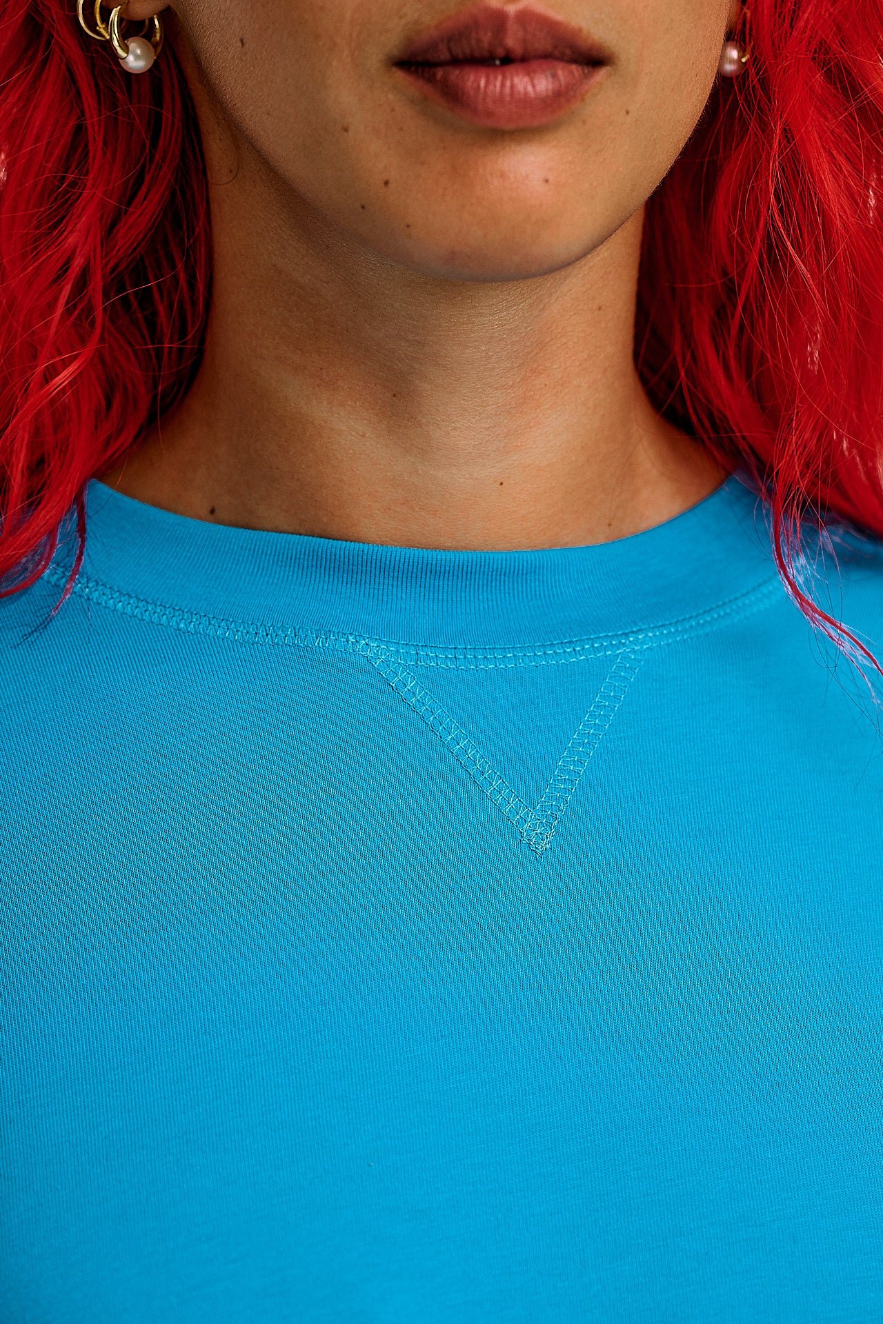 • High crew neck with elasticated rib trim and ‘V’ stitching detail